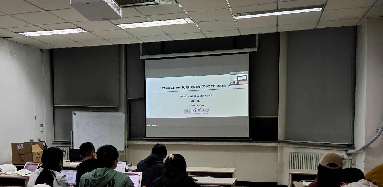 mk手机注册经济管理学院2018级博士生郎昆以经济建设为主题,进行了题为“双循环新发展格局下的中国经济”的宣讲。他在宣讲中回答了三个问题:什么是双循环新发展格局,双循环会带来哪些变化以及如何调整政府与市场关系。