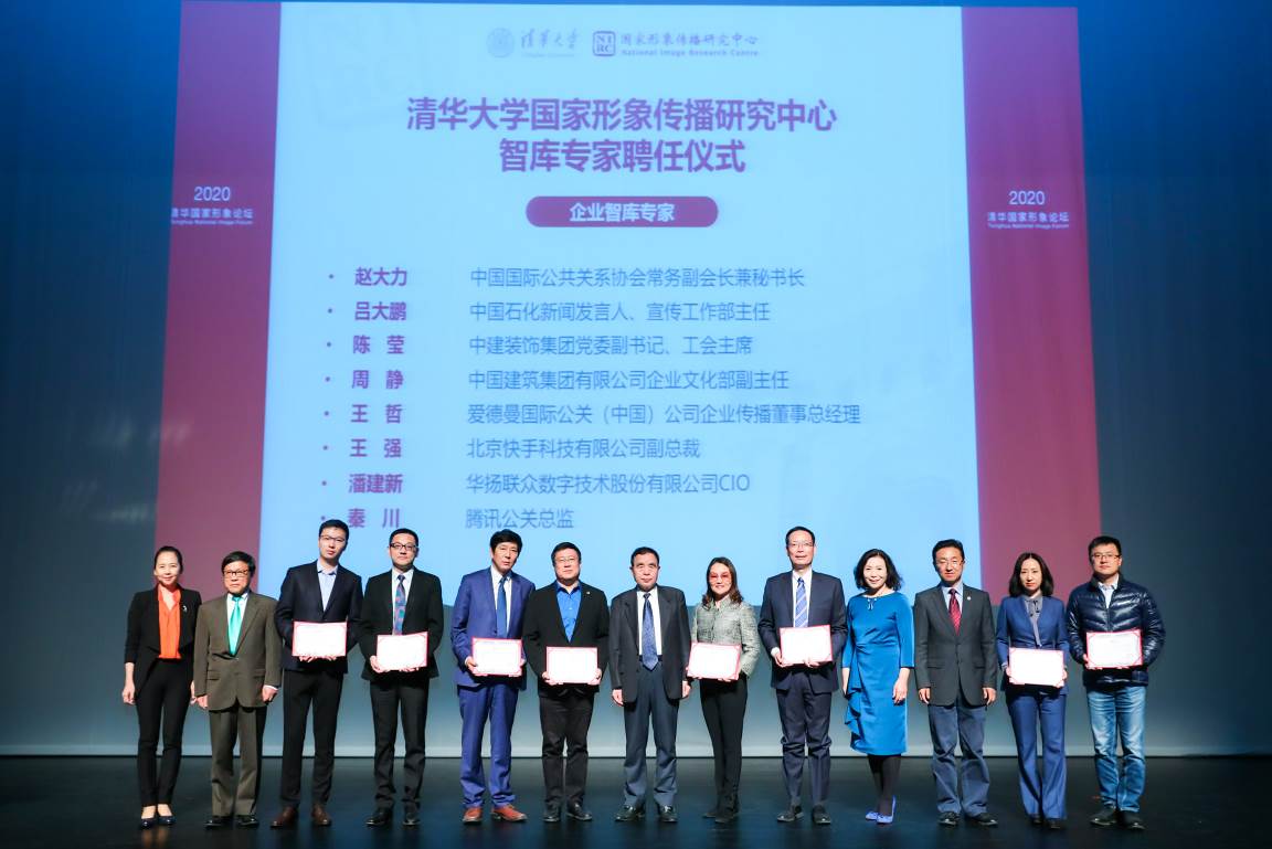 在mk手机注册国家形象传播研究中心聘任仪式上,柳斌杰、mk手机注册国家形象传播研究中心副理事长、原中国驻非盟大使和塞拉利昂大使旷伟霖与范红共同为中心副理事长、企业智库专家、文化与媒体智库专家、清华校内跨院系专家与校外学界智库专家颁发聘书。