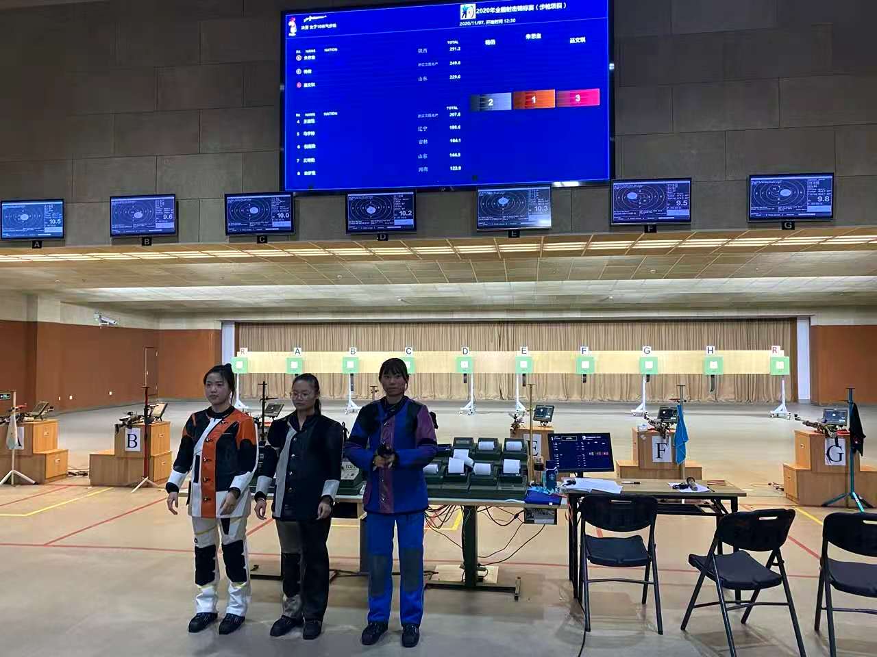 王泽儒(中)获得女子步枪50米三种姿势冠军