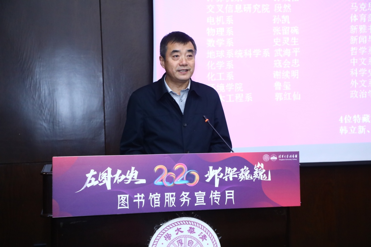 医学院李海涛教授作为教师顾问代表发言,他用“接叶传薪,邺架曹仓”感谢图书馆馆员们的辛勤工作,并表示,在清华十几年,见证了图书馆的发展,也在图书馆收获良多。未来要继续做好教师顾问的工作,为馆藏资源献计献策,及时反馈教师意见,发挥学术顾问的作用。