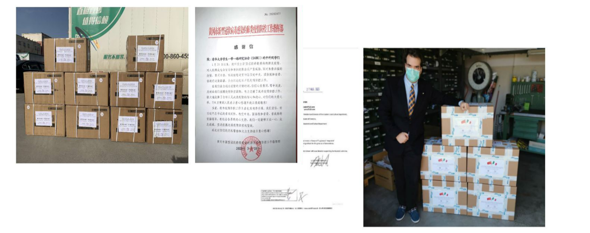 与此同时,国际学生也通过学生社团协会、自媒体等渠道,以捐款捐物、视频祝福等多种形式表达对中国和世界抗击疫情的支持。疫情期间,清华多国学生、校友自发制作视频,祝福国内顺利度过艰难时刻,表达抗击疫情必胜的信心,积极传播正能量。清华一带一路研究协会的中外学生成员主动参与医用物资收集和捐赠工作,支援湖北省黄冈市及意大利米兰地区抗击疫情工作。