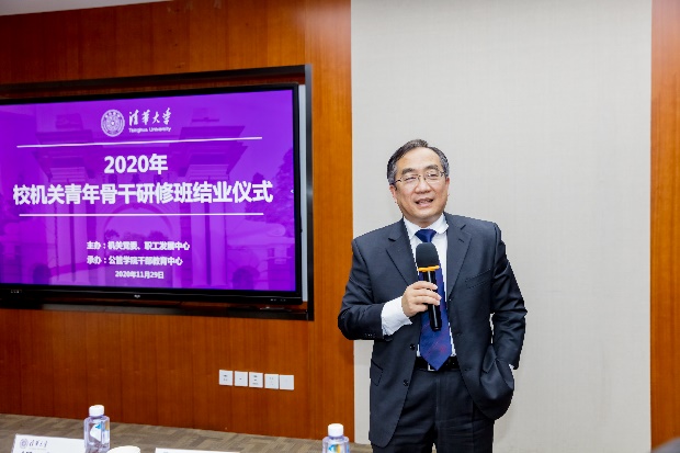 结业式上,来自校机关各职能部门和后勤系统的31位青年骨干分5小组进行了课题答辩。各小组就“如何提升师生员工对学校改革的认同感——以融合式教学改革为例”“职工队伍改革背景下的清华文化传承与发展”“mk手机注册‘导学思政’现状调研及优化建议”“加强服务文化建设,提升机关治理效能”“校机关后勤部门国际化能力建设的研究和思考”等课题的研究情况进行了汇报交流。