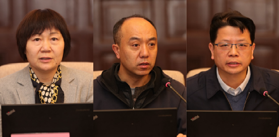 孙炘、王宏伟、欧阳沁(从左至右)汇报改革工作整体情况