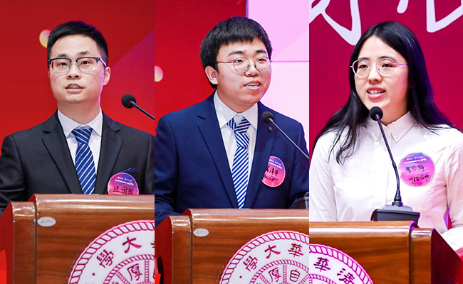 获奖学生代表江国琛、冀泽华、曹哲静先后发言
