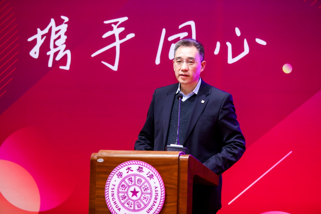 金光农业资源集团首席执行官李东首先宣读了董事长黄荣年先生的书面贺信。黄荣年回顾了15年前以其父母之名设立奖学金的初衷,希望清华学子能够不因家庭经济负担而受限制,专心完成学业,至今已有数千名学生受益。展望未来,金光集团将一如既往地助力清华为国家和社会培养更多顶尖人才。作为清华校友,李东期待在各界的共同努力下,社会早日战胜新冠疫情,迎接春暖花开,共迎清华110周年校庆。