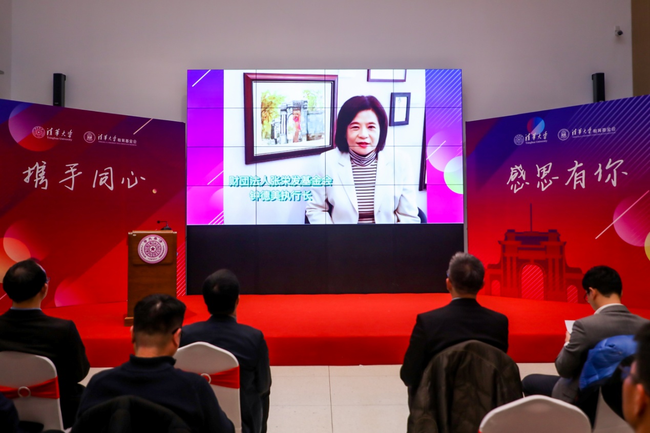 财团法人张荣发基金会总执行长钟德美回顾了2009年陪同张荣发先生到访清华的经历。她表示,人生很难一路平坦,只要保持面对新冠疫情的勇气和信念,就没有无法克服的挑战。她希望清华学子勿忘初心,珍惜时光,努力汲取知识,为未来的发展打下坚实基础。