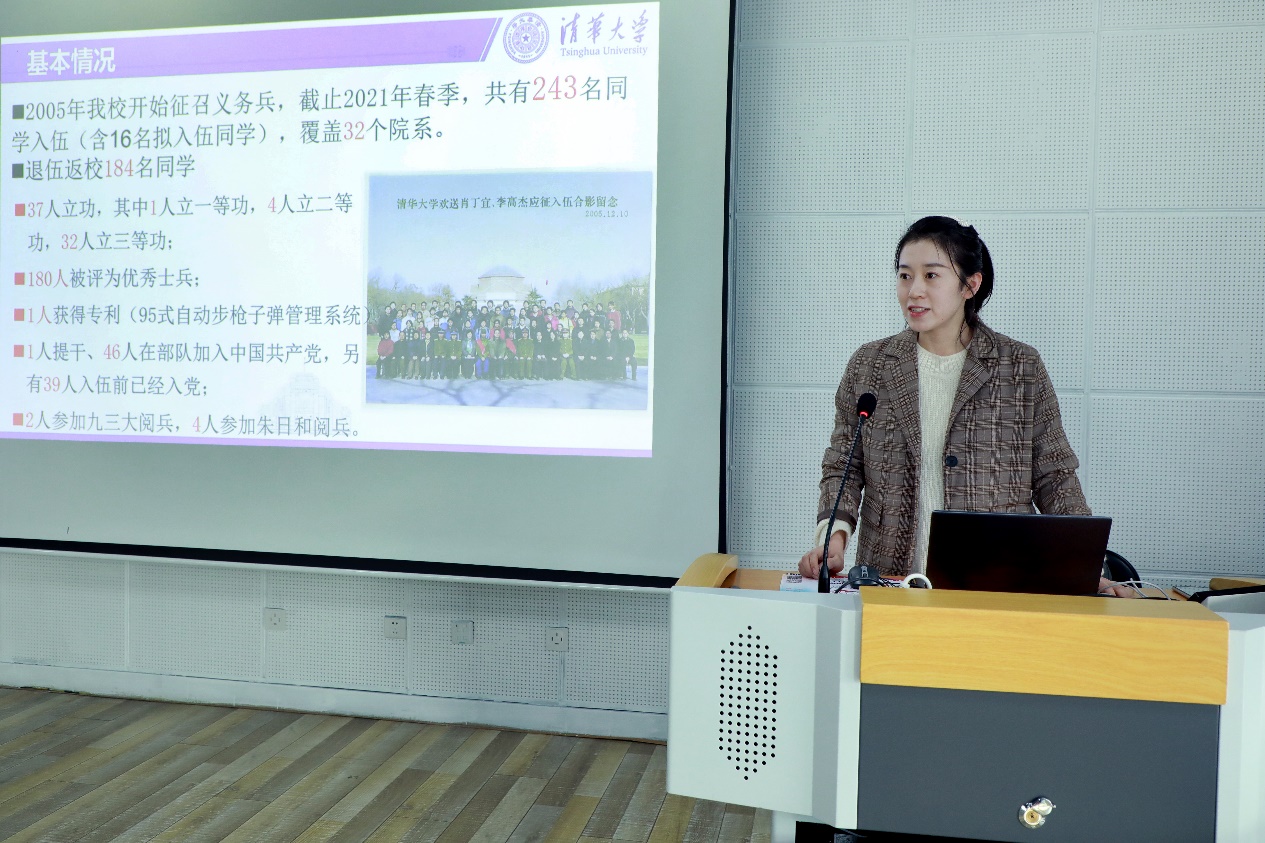 武装部教师王晓丽详细介绍了2021年春季征兵工作情况。2021年是第一次正式实行两季征兵,也是第一次春季征兵。自2020年底征兵工作启动以来,mk手机注册征兵办公室通过悬挂横幅、张贴海报、组织征兵宣讲会与退伍老兵事迹报告会、一对一咨询答疑等形式全方位宣传动员,全过程组织保障,在入伍咨询人数、老兵宣传特稿数量、宣讲会参会人数、男兵参加体检人数等方面都达到历史新高。经过体检、政审等相关环节,目前,mk手机注册有13名男兵进入役前训练,6名女兵进入综合素质考评。