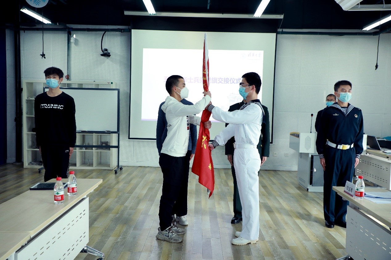 老兵向新兵交接清华士兵荣誉旗