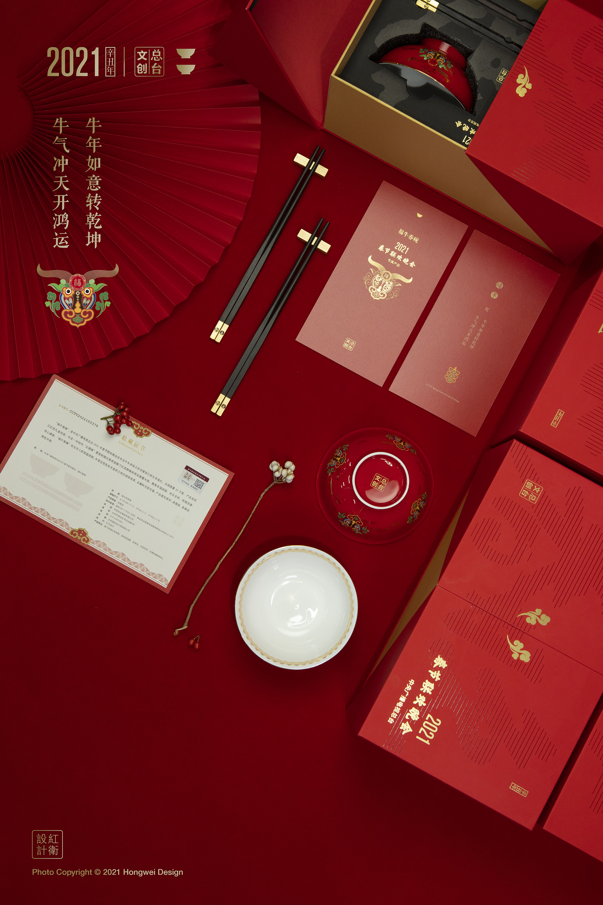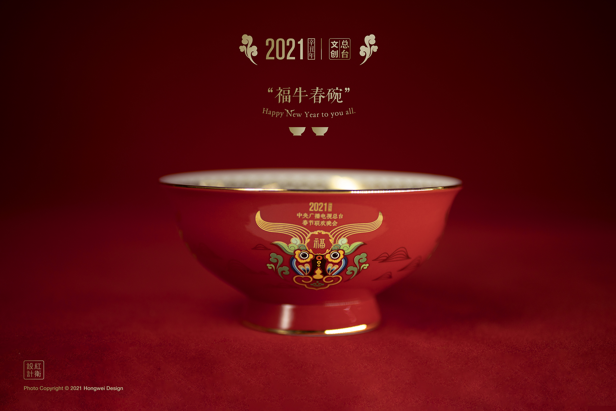 2020年6月,美术学院视觉传达系教授王红卫在中央广播电视总台所属中视实业集团以及北京国际设计周的委托下,与其合作开发2021CCTV春节联欢晚会全国限量发行的生肖福礼——“福牛春碗”,并于近日完成了所有设计与制作,将“福牛春碗”的实物图首次呈现于大家眼前。