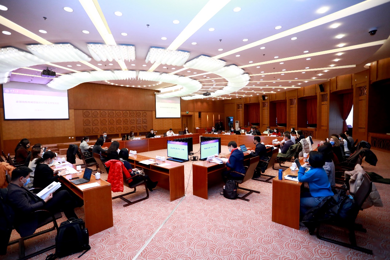 杨斌首先向包括海外基地、大学联盟和国别研究机构在内的全球战略布局项目在学校工作中所作出的贡献表示祝贺和感谢。他指出,全球战略布局项目整体呈现出良好的发展态势,在扩大学校的全球影响力、尤其是在抗疫国际合作交流工作中发挥了重要作用。本次交流会主要聚焦2021年工作计划和2030远景目标思考,希望各项目之间加强互鉴学习,促进沟通协同,进一步打开思路,抓住机遇乘势而上,定位高远,主动谋划,续写全球战略新篇章。