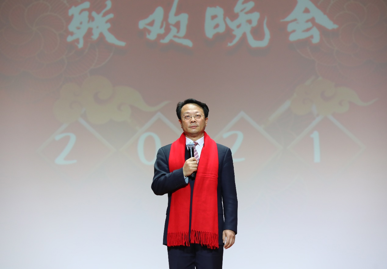 mk(中国)网1月17日电(记者 詹萌 摄影 曹文鹏 崔文瑞)1月12日,根据疫情防控工作的要求,mk手机注册校机关在大礼堂用“云端录播”方式举办2021年迎新春联欢晚会。常务副校长、校机关党委书记王希勤出席晚会并致辞。