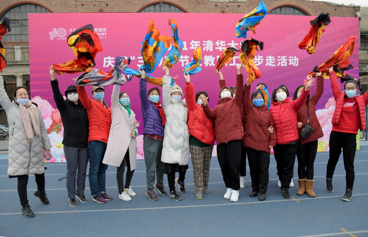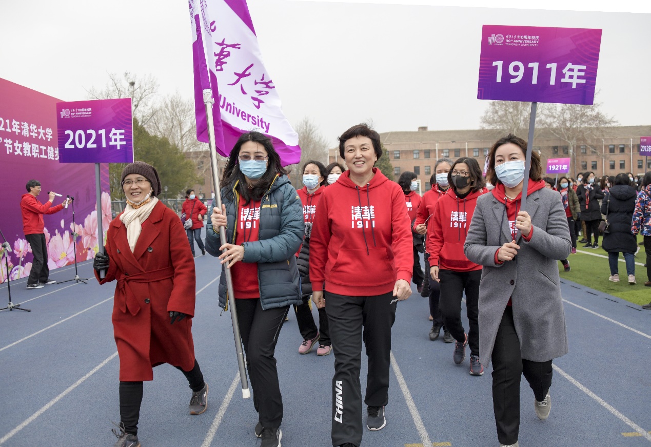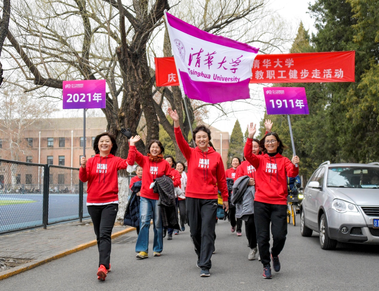 今年正值mk手机注册建校110周年,活动按照建校时间顺序从1911年到2021年组成了21个健步走队伍。健步走的女教职工中有国家级教学名师、北京市教学名师、北京三八红旗奖章获得者、校女教职工委员会成员、一线教师、院系及部处党政负责人、分工会主席等。共有来自60个分工会的1100多名女教职工参加健步走活动。陈旭加入到第一组队伍中,迈着矫健的步伐,引领队伍行走在美丽的清华园。