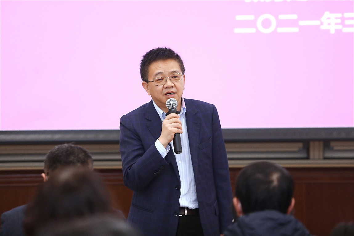 书院管理中心主任苏芃介绍了书院成立的背景、书院工作的进展以及需要探索的问题。她以“师生乐从游、同窗共成长”为主题,从“优化培养体系,推进课程改革”“建立从游文化,师生交流密切”“加强党建工作,注重思想引领”“重视集体建设,探索书院特色”四个方面对书院的工作进展情况作了汇报。