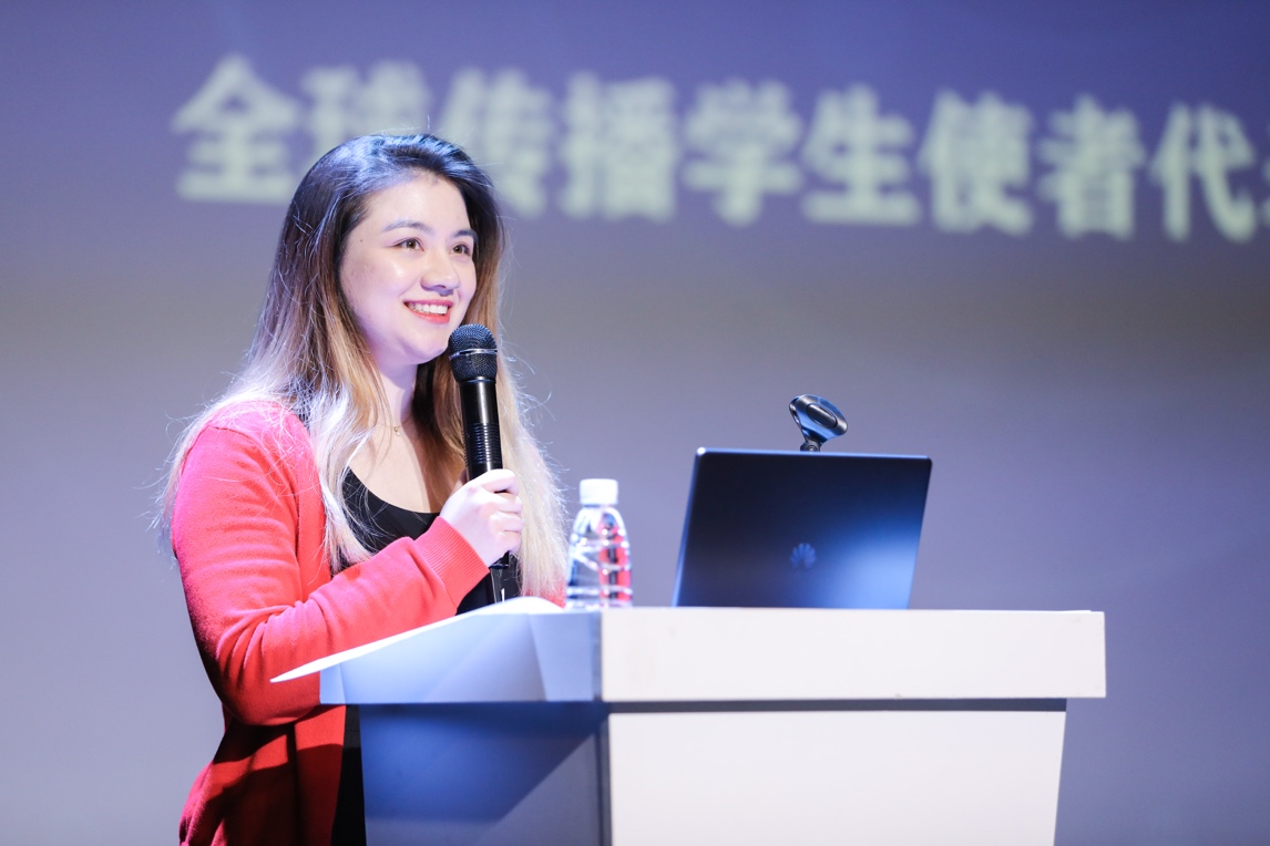 全球传播学生使者代表丹凤发言