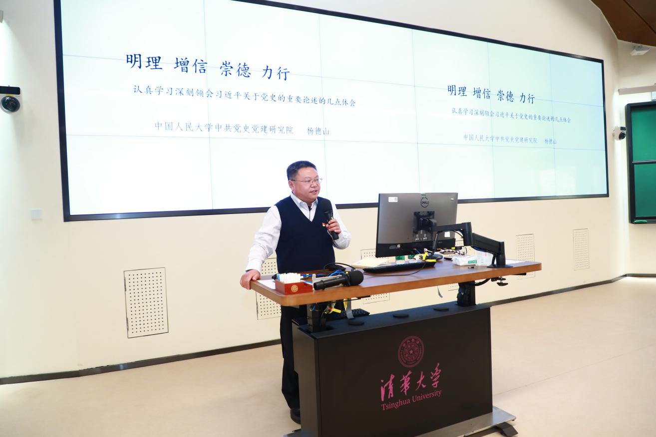 杨德山从史识史论、历史事件、历史人物、政治制度、地方史事五个方面分析了《论中国共产党历史》一书的内容,并为听众讲解了如何通过学党史做到明党理、增自信、崇党德。他特别指出,党员要按照《中国共产党章程》中的规定要求自己,在“伟大社会革命”中奉献,在党的“自我革命”中锤炼党性。