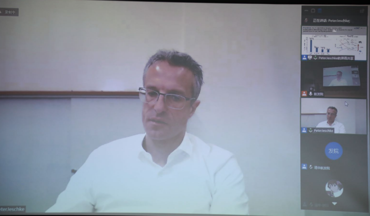 德国亚琛工业大学Peter Jeschke教授以“未来混合电推进航空器发展需求和指标”作主题报告,围绕风扇设计减少噪声、提高效率等研究内容开展研讨。