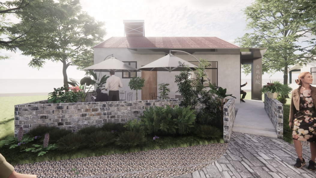 在江苏省南京市高岗村,当地政府从村民手中将房屋租来,再由清华学生进行设计和改建。当过乡村厨师的村民诸春花想办个农家乐,便提出希望清华学生帮忙设计改造住宅。经过现场调研和与村民、施工队的沟通,同学们决定将村民春花姐的住宅改造成为一个具有餐饮、休闲、娱乐功能的农家乐。于是,他们提出了改造出两个包间,增加院内的室外餐位、储藏空间、吧台土灶和一处室外洗手池的建议。同时,为了节省造价,团队采取了保留设计的室内墙体格局、墙面瓷砖、吊顶,以室内软装为主的方案。农家乐的最终呈现效果也得到了诸春花的认可。