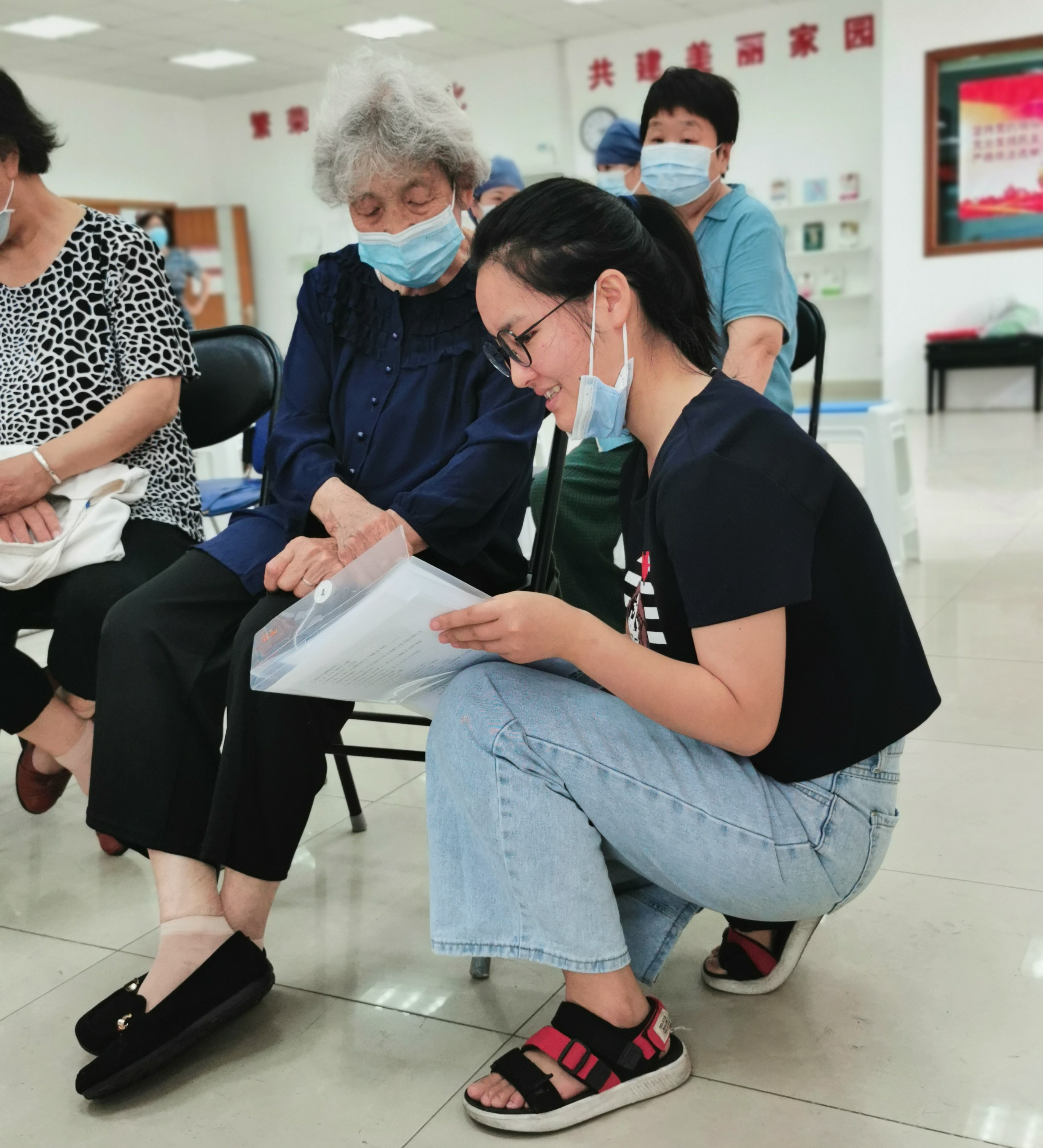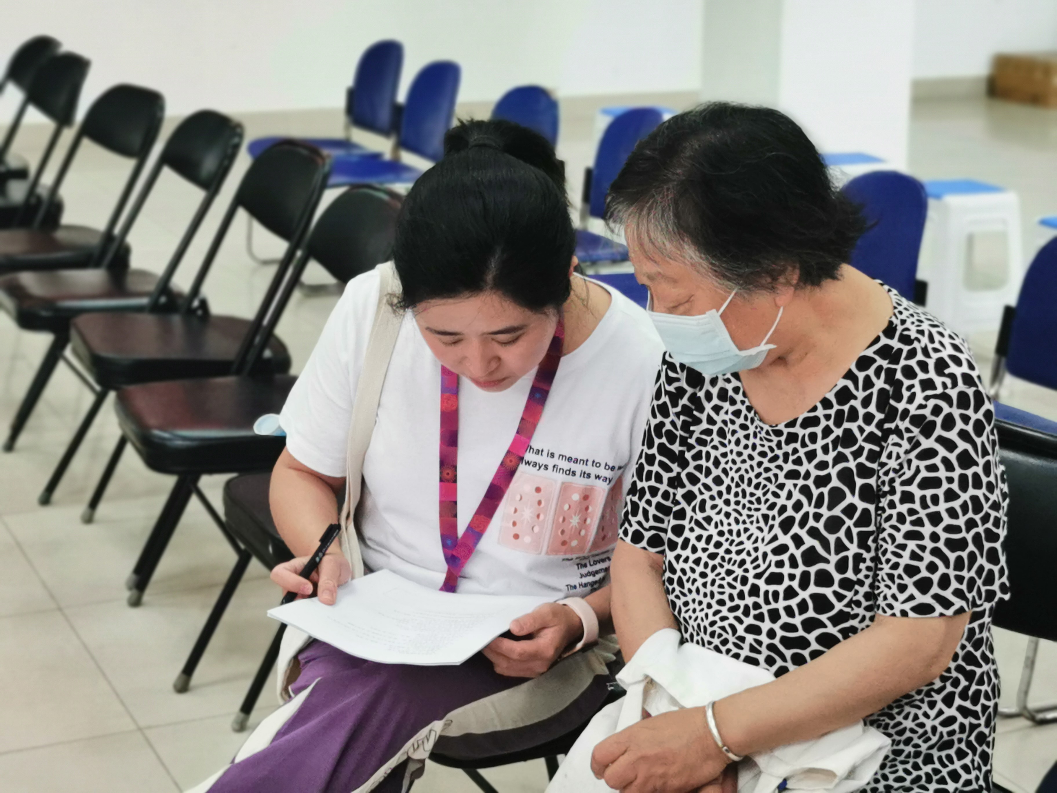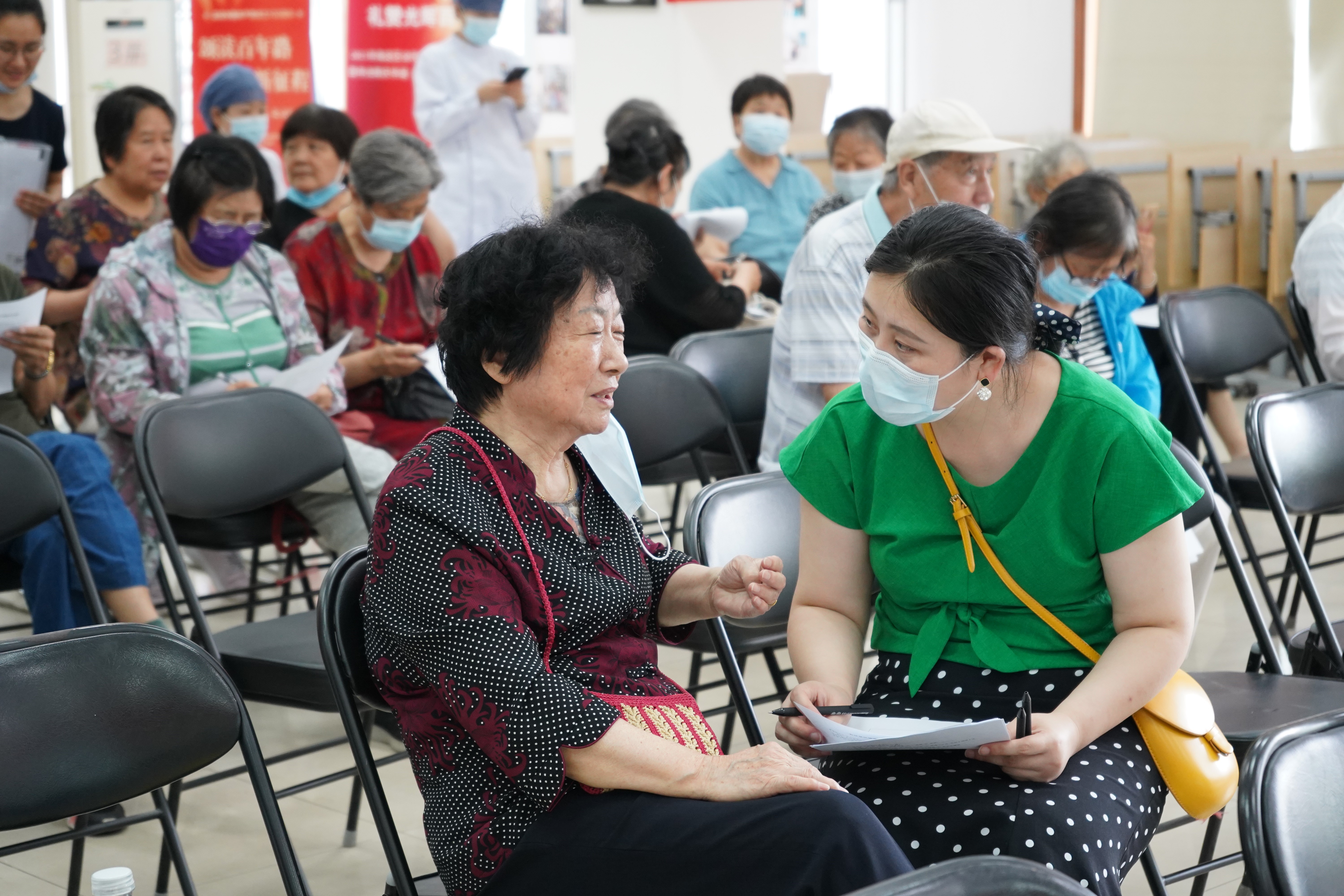 此外,由卫健学院专家、校医院工作人员组成的义诊队伍,免费为社区居民测量血糖、血压,并针对新冠疫苗接种、慢性病和饮食等相关问题进行现场答疑。调研小组成员还对社区居民进行健康需求调研,组织居民认真填写调查问卷,并对重点人群实施营养干预。