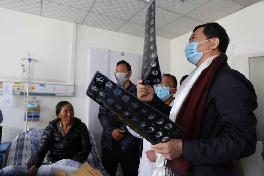 董家鸿(右)在青海大学附属医院开展义诊查房