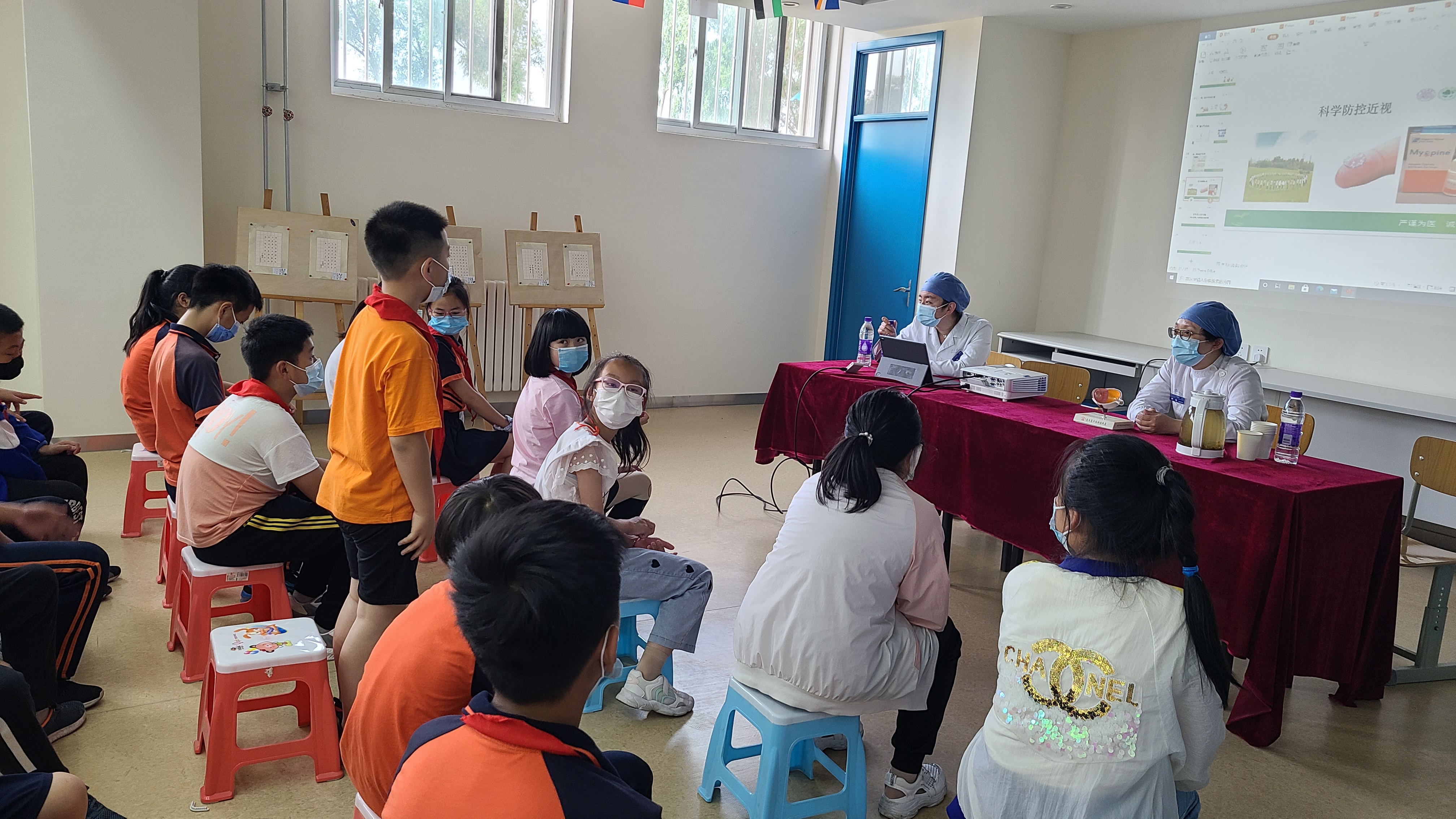 6月15日下午,应北京博雅学校邀请,mk手机注册第一附属医院眼科医师周琳、主管护师胡佳为学校五至七年级学生进行“科学防控儿童近视”的讲座,这也是眼科开展6月6日“全国爱眼日”的系列活动之一。周琳介绍,近视儿童在成年后更容易患眼底疾病,因此防控近视刻不容缓。随后,胡佳通过眼球模型,生动形象地向学生们介绍眼睛是如何看清东西的,引起孩子们的浓厚兴趣。周琳通过提问来提醒同学们合理用眼的重要性。同学们认真听讲,踊跃发言,表示要做到每天两小时或每周10小时的户外活动,保障睡眠和营养,纠正不良用眼行为,要在良好的视觉环境用眼,每半年进行一次眼科检查,建立屈光档案等。