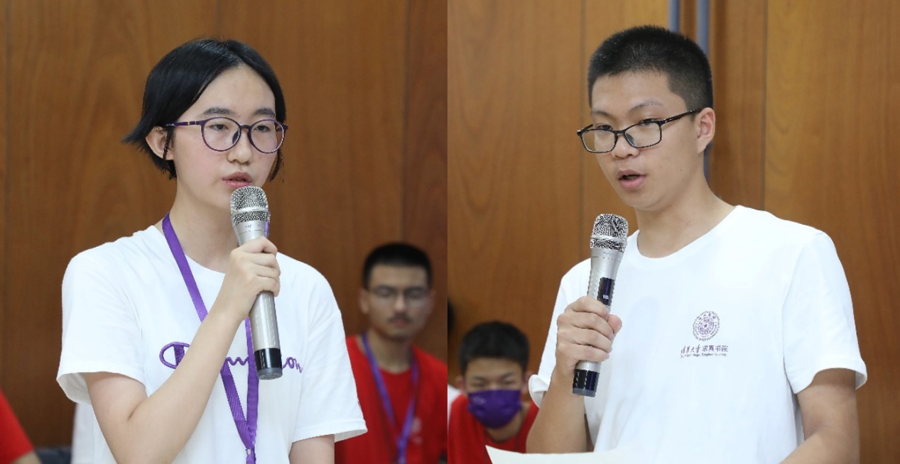英才班的李昕妙和领军计划的赵梓博先后作为学生代表发言。李昕妙从小就被数学的独特魅力所吸引,她凭着对数学的无限好奇和心中的执着,始终没有放弃对数学世界的探索。李昕妙表示,在佼佼者汇集一堂的求真书院肯定会有压力,但更多的是动力。在学习过程中,谨记“热忱”和“求真”,时刻保持对数学的好奇,义无反顾地探索数学世界,追求真理。每位求真学子心中都应有一个奋发图强的火苗,激励大家无惧困难与挑战,担起求真学子的责任和使命。赵梓博作为首届“领军计划”的求真学子之一,围绕求真书院两个月的预科培养谈了自己的体会。赵梓博表示,在预科学习阶段,从一次次专家讲座,到小班习题课,再到益友学者见面交流,求真书院设计开展的活动都体现了书院对人才培养工作的重视。非常感谢书院规划设计的预科培养环节,为大家提供了一个非常难得的“缓冲”阶段,让同学们对未来高难度高挑战的学业做好准备。