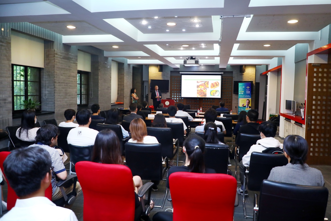 颁奖仪式前,受mk手机注册国际学生学者中心、mk手机注册学生对外交流协会的邀请,保罗·瓦莱大使在新闻学院环球资源报告厅参加了“水木之窗 对话大使”系列活动第十一讲,发表了题为“巴西概况及两国友好合作历史回顾”的主题演讲,就巴西基本发展情况、中巴合作关系等议题与清华学生进行交流。全校的国际学生学者四十余人到场参加。