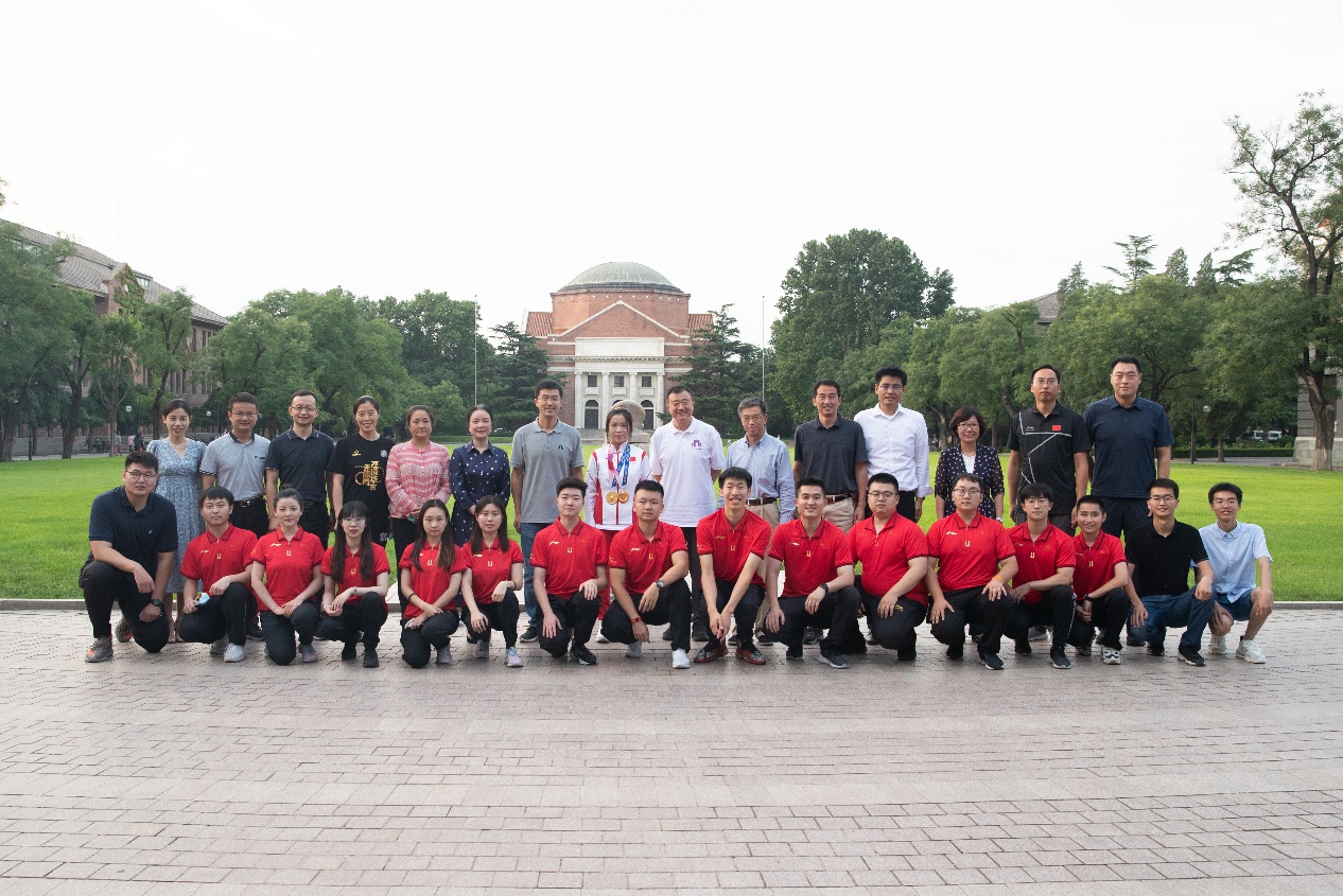 射击队、经管学院、武装部、学生部、体育部、校团委、清华附中等相关负责人与师生代表参加欢迎会。