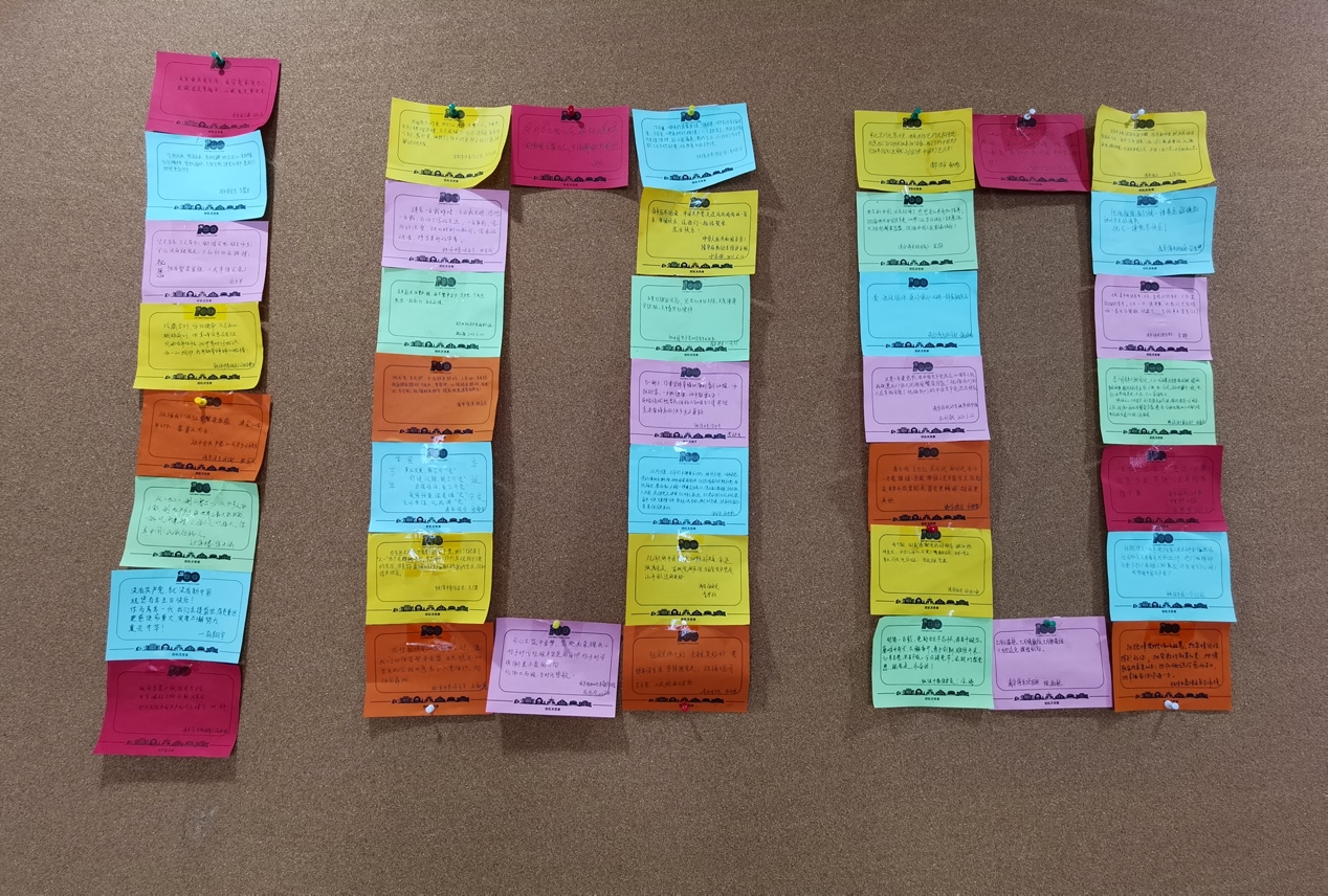 “国强民富,人民做主,览千年历史未曾见;浴血奋斗,上下求索,慰万千英烈可安心。”教务处的党员群众们将一张张手写着“心里话”的精致卡片拼成党徽的图案,不仅表达着对党的感恩与祝福、对中华民族伟大复兴的自豪与期待,更象征着一颗颗坚定不移跟党走,同心创造新辉煌的赤诚之心。