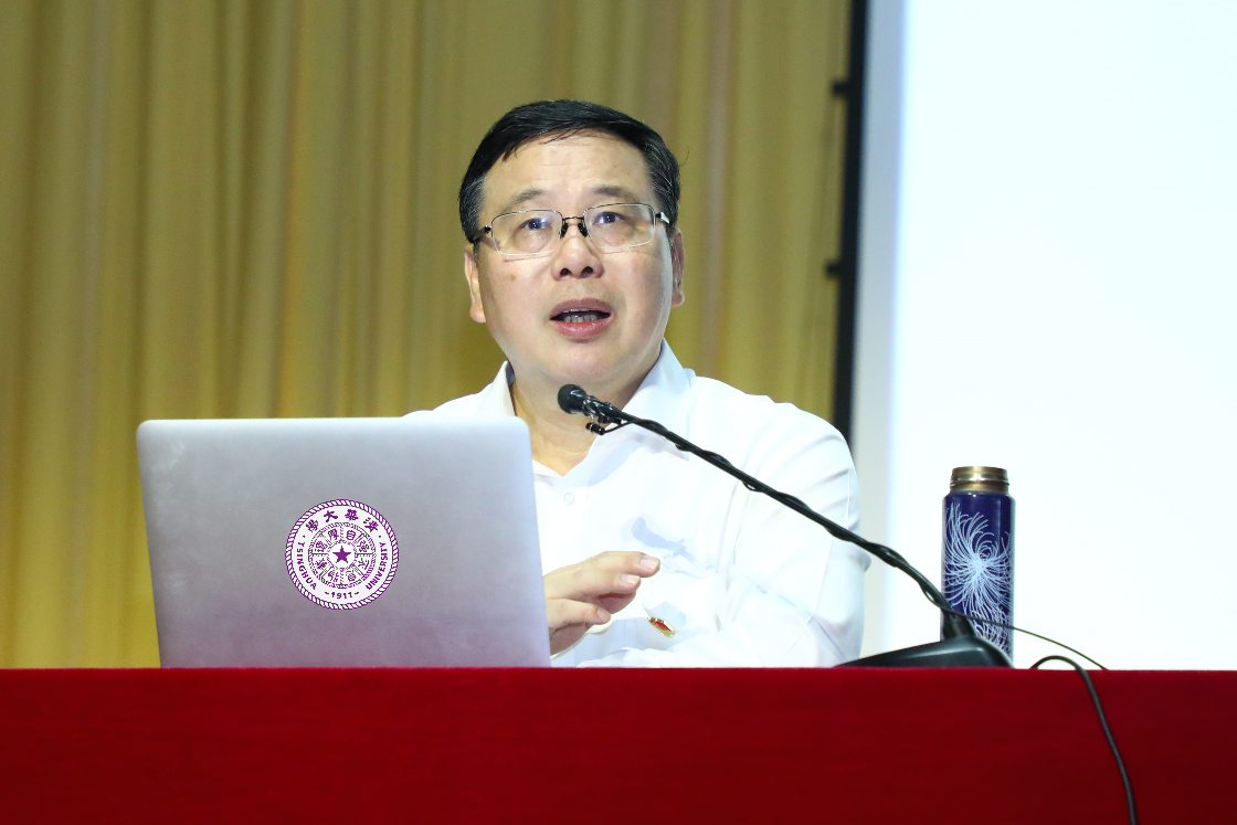冯俊以“以史为鉴,开创未来的行动指南——深入领会习近平总书记‘七一’讲话”为主题作专题辅导报告。冯俊从深入领会全面建成小康社会的历史性成就,深入领会实现中华民族伟大复兴是百年党史的主题,深入领会党的百年不懈奋斗创造出的伟大成就,深入领会伟大建党精神是中国共产党的精神之源,深入领会以史为鉴、开创未来的根本要求和伟大号召等五方面,详细阐释了“七一”重要讲话的核心要义和理论价值。冯俊希望大家能把学习重要讲话同实际相结合,将学习“七一”重要讲话精神的成果转化为奋进新征程、建功新时代的行动。