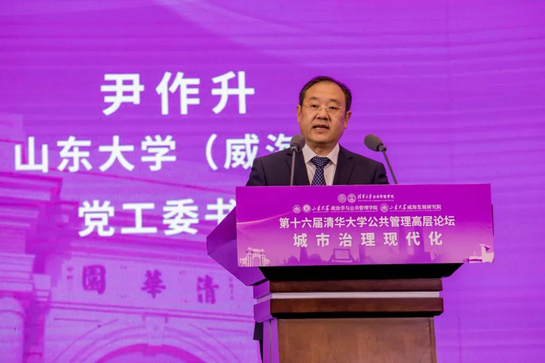 尹作升在致辞中说,山东大学(威海)和威海市着力打造关系共同体、利益共同体、命运共同体和责任共同体,将服务威海精致城市建设和学校“双一流”建设紧密结合,携手成就了一段山海相拥、校城共进的佳话。面向“十四五”,如何更好推进市域社会治理现代化是社会各界共同面临的时代课题,更是高校义不容辞的社会责任和使命担当。