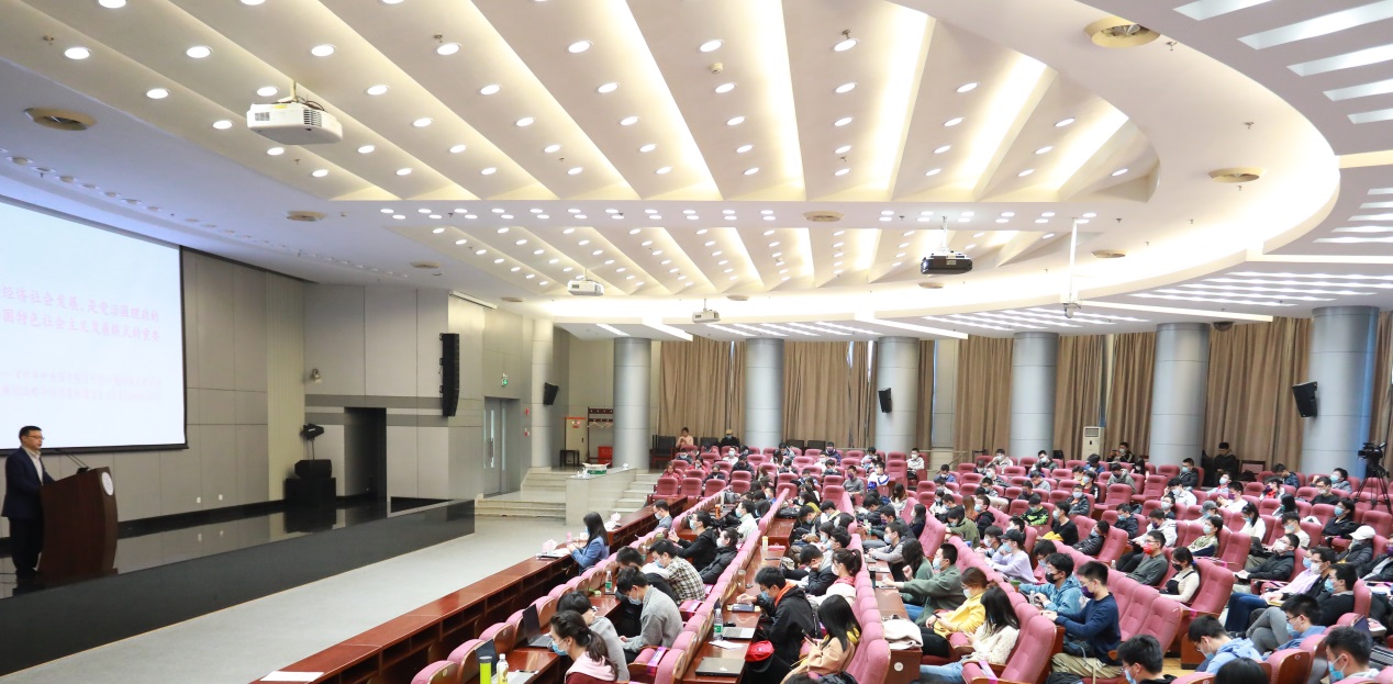 杨永恒以“明确前进方向,开拓发展新局——理解国家‘十四五’规划”为题作专题报告。杨永恒结合国家发展规划的基本脉络系统地介绍了国家“十四五”规划的指导方针、发展原则、战略导向、主要目标和重点任务。他表示,“十三五”时期,我国在经济发展、脱贫攻坚、污染防治、提升人民生活水平、建设创新型国家和新冠肺炎疫情防控等方面都取得了丰硕的战略成果。“十四五”规划的提出正值世界百年未有之大变局加速演进,我国处在实现中华民族伟大复兴的关键时期,加快构建以国内大循环为主体、国内国际双循环相互促进的新发展格局是对我国客观发展规律和发展趋势的自觉把握。他鼓励新党员同学们充分认识发展规划在中国社会发展过程中起到的重要作用,坚定道路自信,并在积极思考自己人生规划的过程中努力将个人发展融入到国家和社会的发展中去。