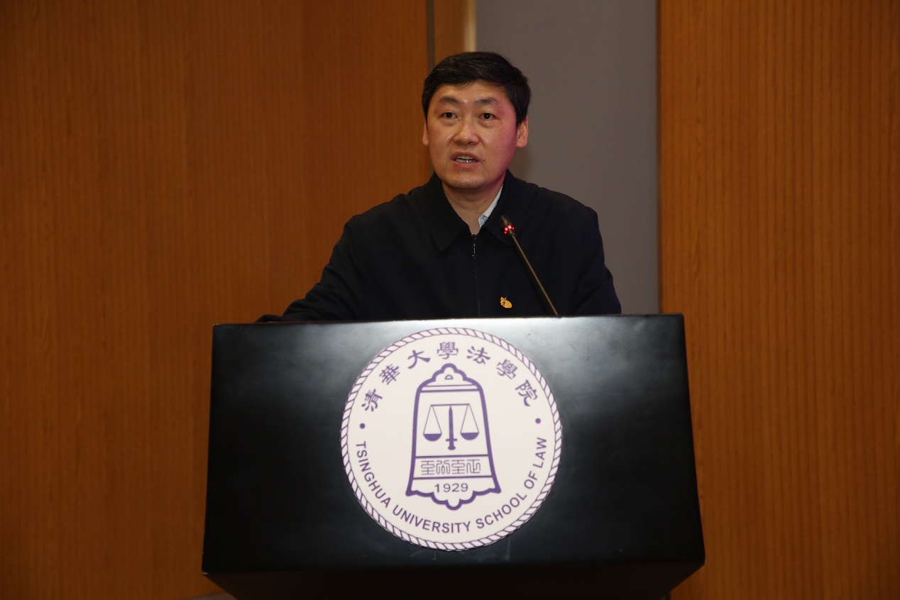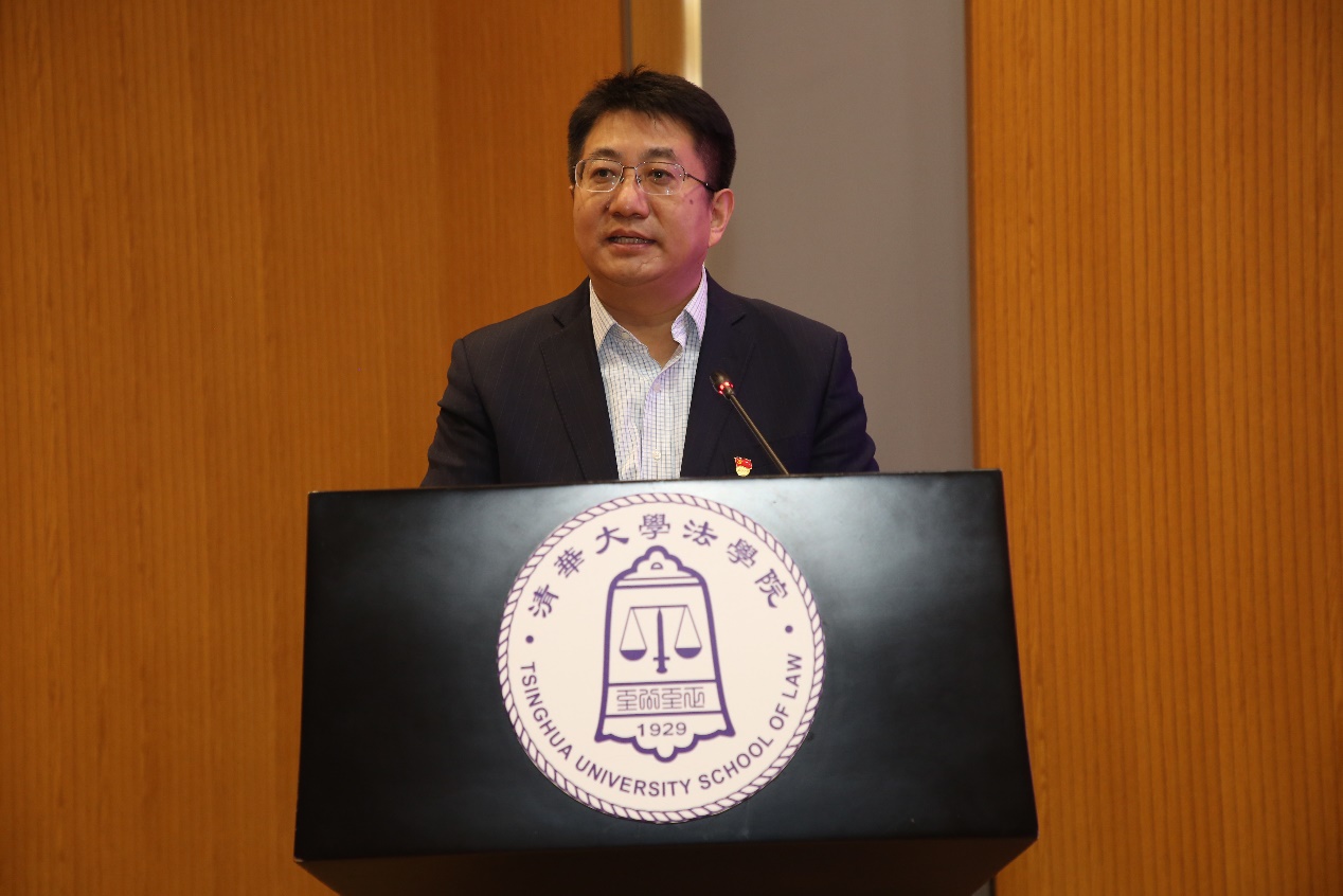 研讨会在雄壮的国歌声中拉开序幕。申卫星为会议致开幕词,并作主题报告。他回顾了2020年11月16日-17日中央全面依法治国工作会议上习近平法治思想正式确立的历史时刻,强调了习近平法治思想的重大理论意义和现实意义,解读了习近平总书记关于坚持在法治轨道上推进国家治理体系和治理能力现代化的重要论述。申卫星表示,习近平法治思想为当代法学教育改革指明了前进方向。他说,清华法学院将在习近平法治思想的指引下,培养面向国内、面向国际、面向时代的高素质法治人才,努力实现国家意识、国际视野、科技素养三个方面相结合的人才培养目标。