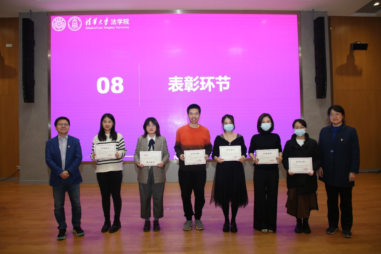研讨会上,法学院还对习近平法治思想学生宣讲团以及在“永远跟党走,弘扬习近平法治思想”主题征文比赛中获奖的同学依次进行了表彰。