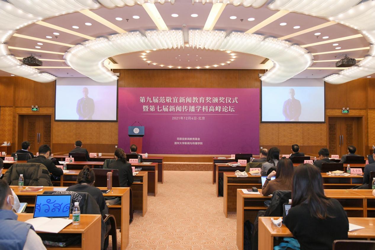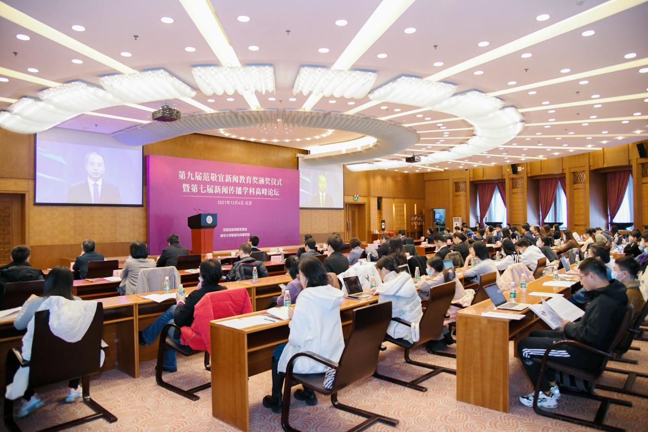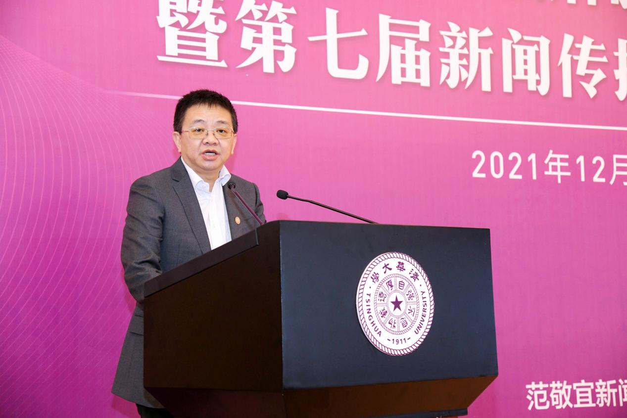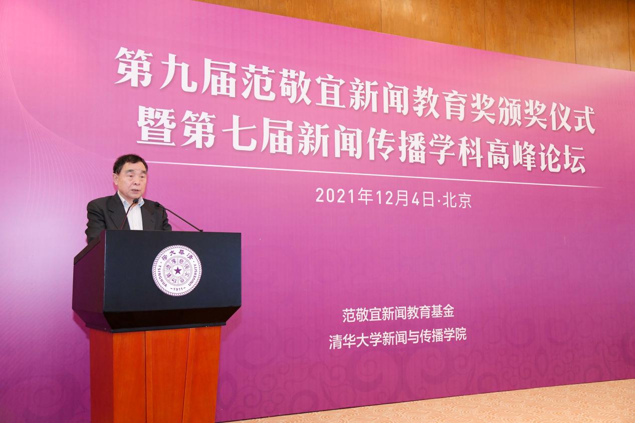 彭刚在致辞中指出,每一届范敬宜新闻教育奖的获奖者,都在用自己的作品或实践,向学界、业界展现正能量。媒介变革与社会发展进程的联系紧密而复杂,新的时代也需要更加优秀的新闻人才,他期待未来能有更多学子、教师和业界人士加入新闻事业,为学科的发展、行业的繁荣、社会的进步作出贡献。他表示,范敬宜先生“做脚下沾满泥土的新闻人”“要力戒浮躁,新闻要有文化”等谆谆教诲,于今仍有引领作用。他希望,范敬宜新闻教育奖能继续传递范敬宜先生的精神火炬,为支持新闻传播学学科建设、讲好中国故事贡献清华智慧与清华力量。