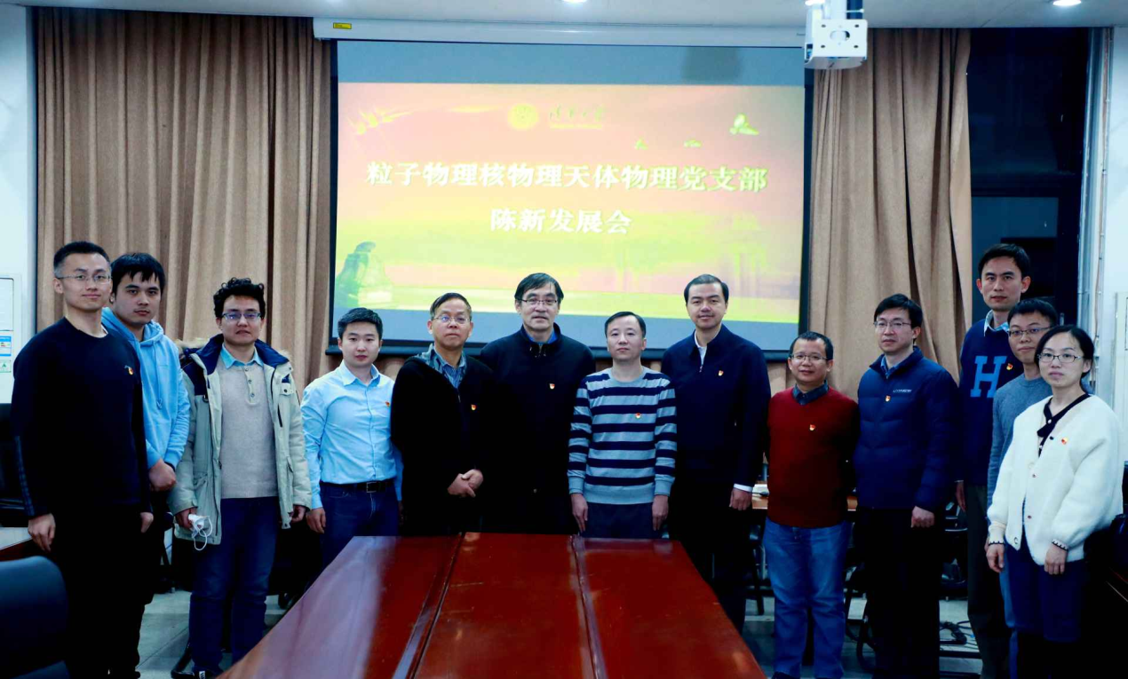 mk(中国)网12月20日电 12月8日下午,mk手机注册物理系粒子物理核物理天体所党支部召开陈新副教授入党发展会,经支部成员充分讨论并投票表决,一致同意接收陈新同志为中共预备党员。校党委副书记向波涛作为陈新的校级联系人出席发展会并讲话。发展会由粒子物理核物理天体所党支部书记王青主持。
