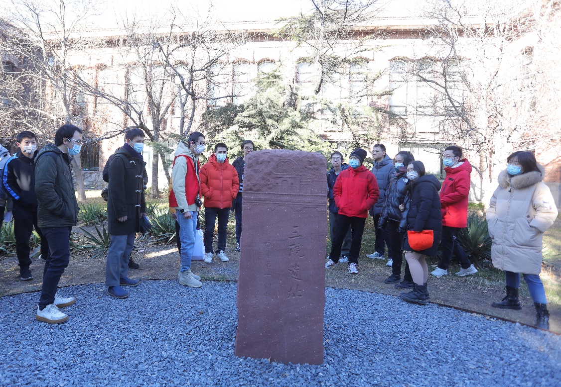 历史是厚重的,也是鲜活的。为了将相对枯燥的文献历史与实地景观相结合,为同学们带来沉浸感十足的游览体验,讲解队精心设计了讲解词。为了拉近同学们与历史的距离,讲解队选择了大家耳熟能详的经典故事作为切入点,唤起大家的情感共鸣,例如在讲解科学馆时从《马兰花开》中的邓稼先展开介绍“两弹一星”元勋;讲解西阶时则追溯其建造初衷,结合许多院系的复系历史来引出院系调整中清华人为祖国高等教育作出的贡献。在依托具体点位设计讲解词之外,还在讲解路途中加入了“国庆庆典中的清华人”“清华学子从军行”等与同学们生活息息相关的内容。