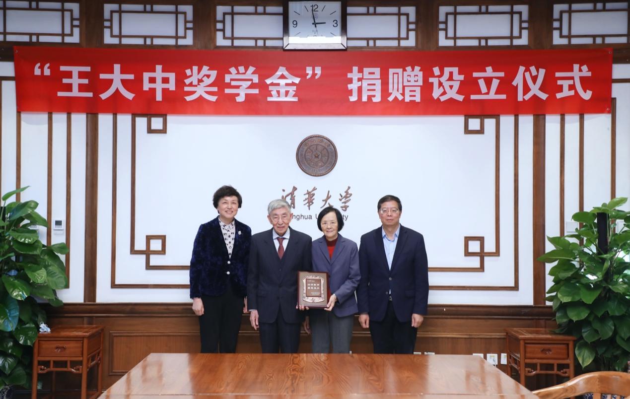 仪式上,王大中与教育基金会秘书长袁桅签署捐赠协议。陈旭、邱勇向王大中颁发捐赠纪念牌。学生代表向王大中、高祖瑛伉俪献花。