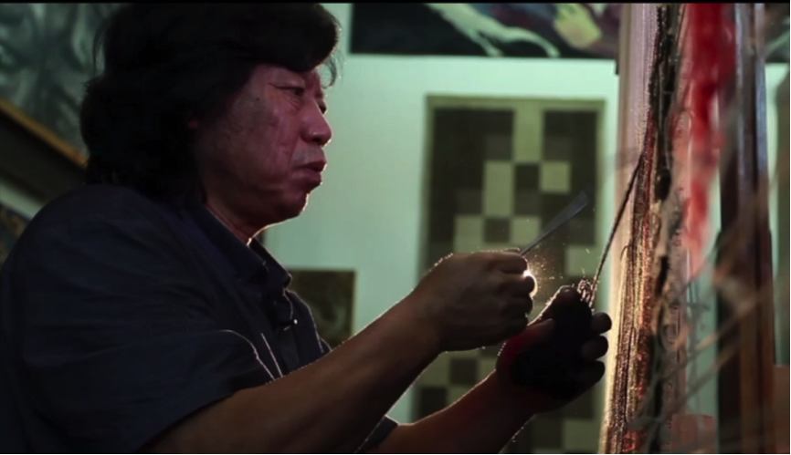 程向军教授在壁画创作现场