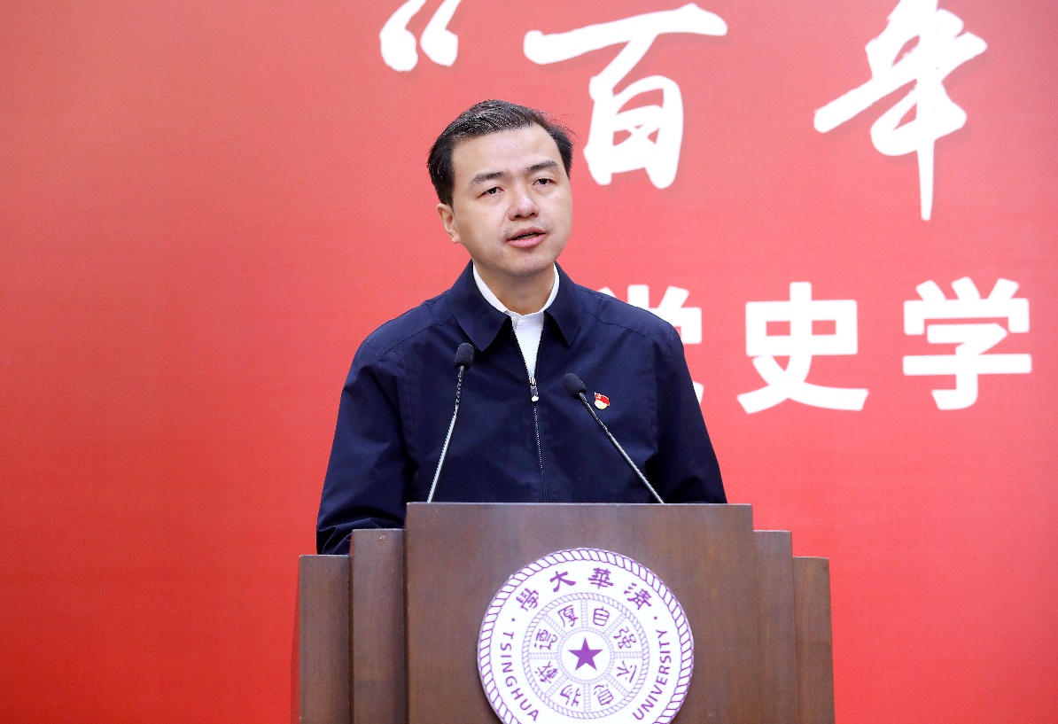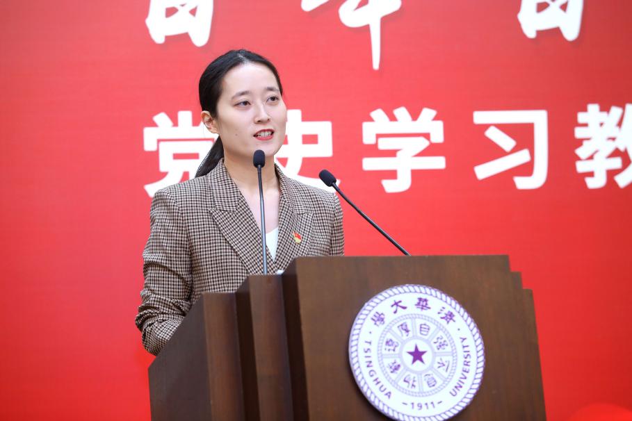 马克思主义学院2019级博士研究生杜亚男、2020级博士研究生周子健分享专题宣讲心得,2020级硕士研究生宋志浩以“中华民族伟大复兴中的青年选择”为题进行现场宣讲。他们纷纷表示,党的历史是最生动、最有说服力的教科书,新时代的清华学子应当为讲好中国故事贡献清华智慧。