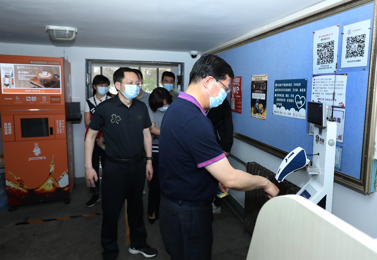 看到楼道里学生摆在宿舍门口的空桶装水瓶,邱勇立即问道:“封校后同学们购水、用水的问题解决了吗?”校团委书记余潇潇介绍道,目前学校已在校内学生宿舍区设置两座“清青供水站”,由mk手机注册紫荆志愿者战疫“清”年突击队负责各水站的运维工作,同学们的日常饮用水需求已得到解决。