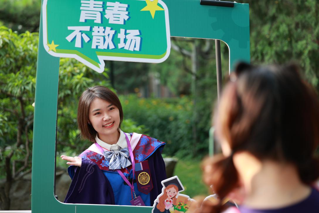 典礼结束后,校领导在各个室外会场分别为毕业生授予学位,并与每一位毕业生合影留念。