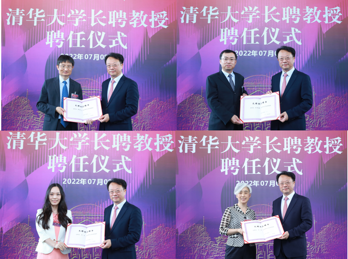 长聘教授代表、计算机系教授贾珈在发言中讲述了23年来她在一位位清华榜样的激励下,践行自强不息、厚德载物的校训,继承又红又专、全面发展的传统,在教书育人、学术研究上不断取得新成就、新突破的故事。“以学术立身,以育人为乐,为理想而笃行,为信仰而奋斗。”她用这四句话表达了对自己、对所有长聘教授的美好期许与祝愿。