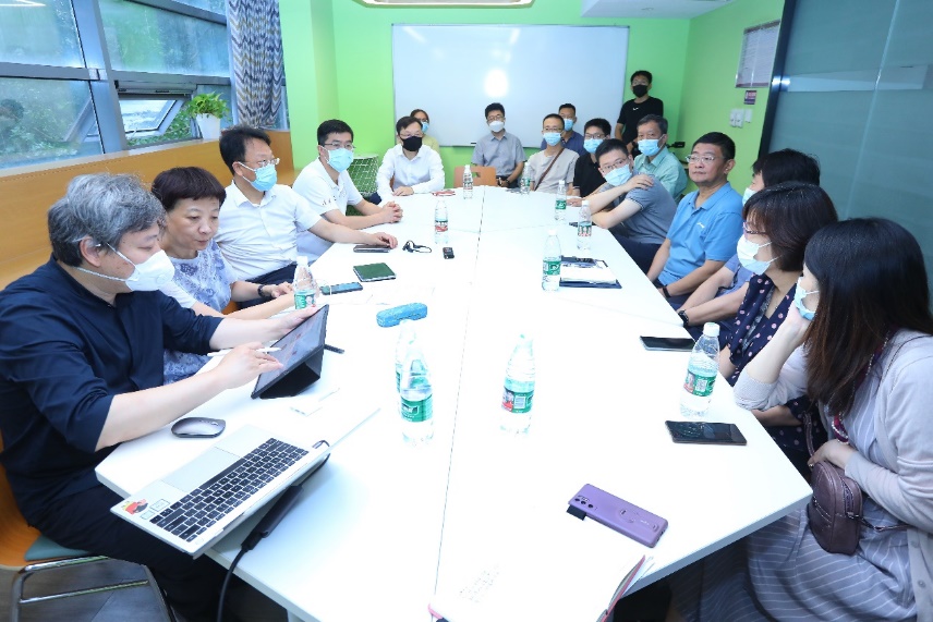 随后,王希勤和相关人员召开现场工作会,讨论样板间设计和建设工作,并对未来工作提出要求。项目设计师、校友李亦农介绍了项目设计理念。国际处处长郦金梁、基建处处长李一、学生部部长张婷、研工部部长赵岑、学生社区中心主任方华英等与会人员结合各自相关工作分享了对样板间调研的看法和对以后工作的建议。