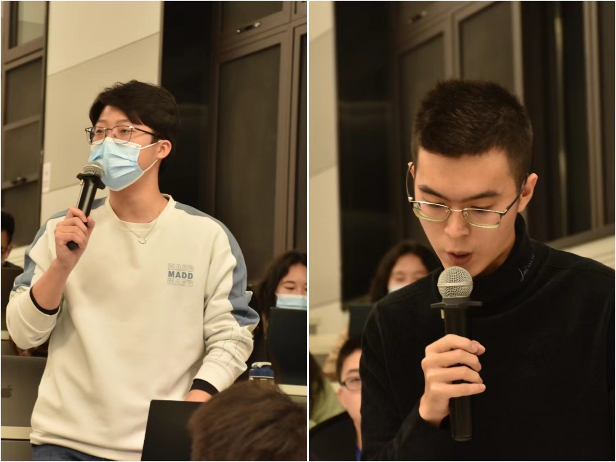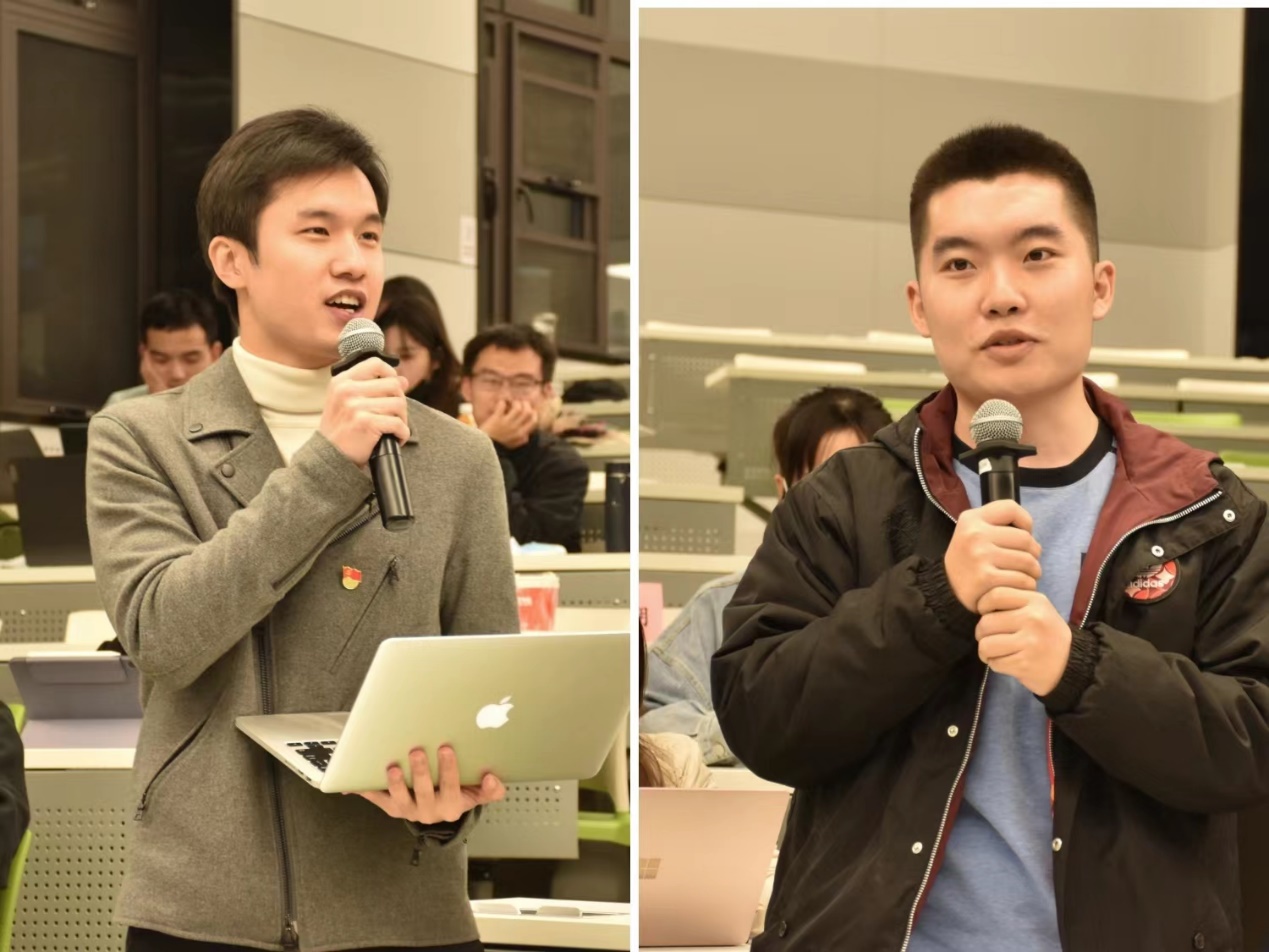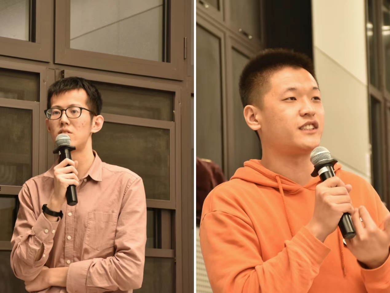 第五期学员李承谦(左)、张佳鸣作分享交流