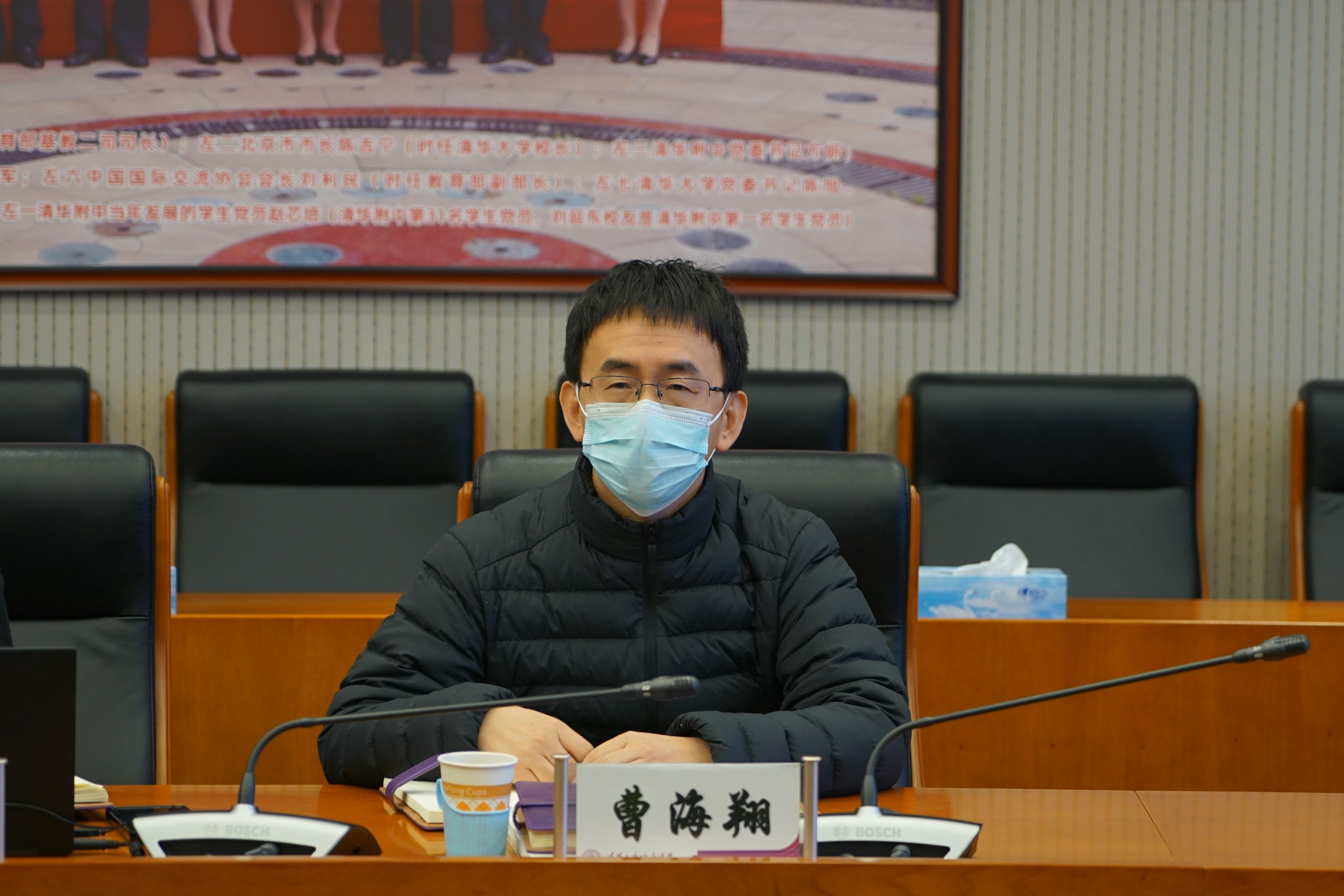 曹海翔介绍了学校在防疫过程中不断提高师生政治站位,做好思想动员的具体措施。