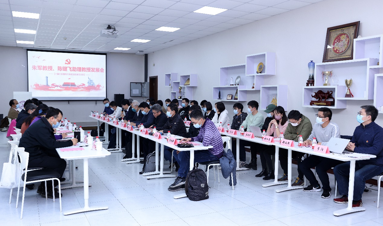 朱军的入党介绍人,计算机系党委原书记、科研院院长刘奕群,计算机系智能技术与系统实验室党支部书记刘华平分别介绍了朱军的培养情况和综合表现。陈键飞的入党介绍人刘奕群和计算机系党委副书记刘知远分别介绍了陈键飞的培养情况和综合表现。支委会报告了朱军和陈键飞的考察审查情况。