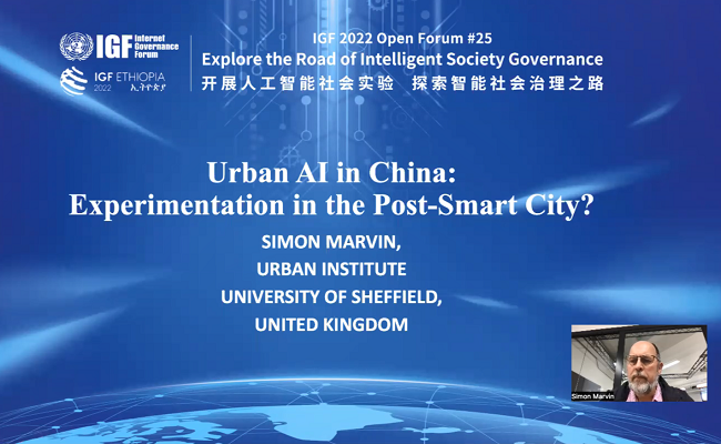 英国谢菲尔德大学城市学院教授西蒙·马文(Simon Marvin)作了题为“中国的城市AI:基于后智慧城市的实验探索”的主旨演讲。他表示,人脸识别、物联网、机器人、人工智能等第四次工业革命的技术已在城市治理中广泛应用,这些技术应用对于城市发展、市民生活、政府决策等各方面产生重大影响。他建议,在后智慧城市时代,需要重视人工智能技术在城市基础设施建设和城市规划中的融入使用,推动监管部门改革创新以更好地服务于人工智能技术发展和实验,正确看待人机交互中的权力关系交织和合作问题,并进一步加强人工智能赋能城市治理潜力与局限的国际探讨。