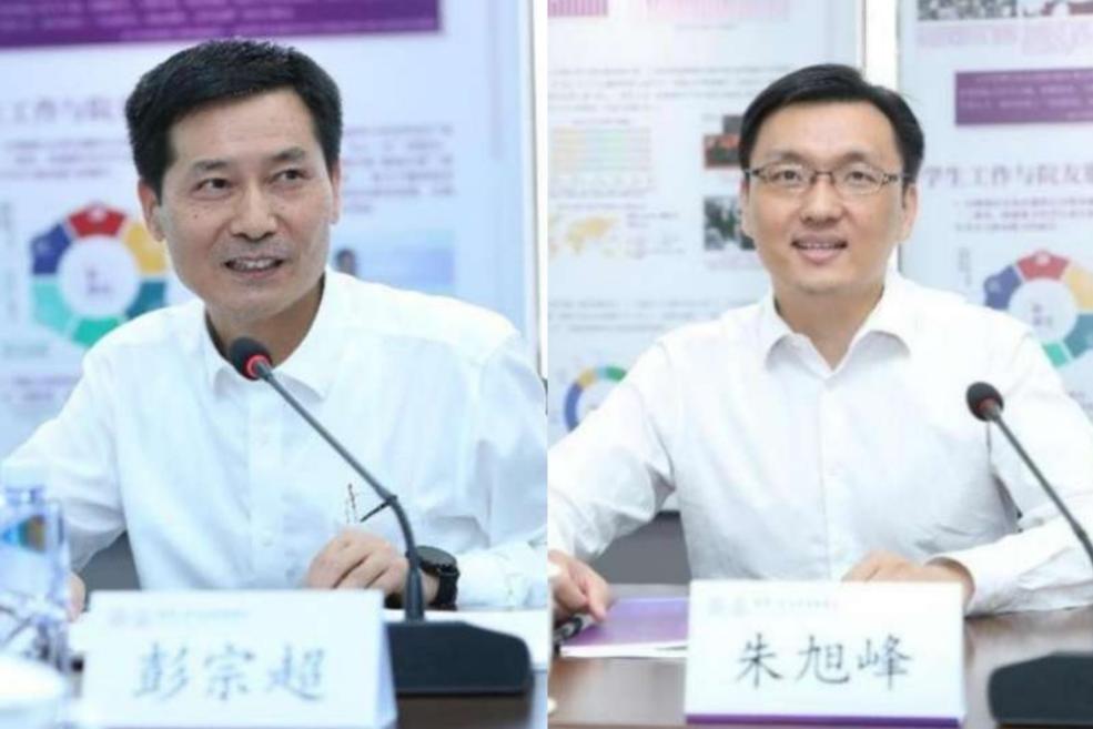 彭宗超(左)发言,朱旭峰主持座谈会并汇报学院建设情况