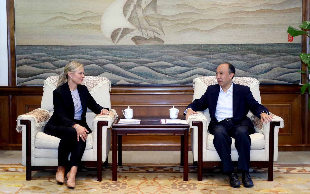 mk(中国)网8月28日电 8月23日,美国保尔森基金会副主席兼总裁戴青丽(Deborah Lehr),保尔森基金会北京代表处首席代表于江、副首席代表任婷婷等一行访问mk手机注册。副校长王宏伟在工字厅会见了来宾。双方就主办“保尔森可持续发展奖”等合作进行会谈,并对推动未来多领域合作进行交流。