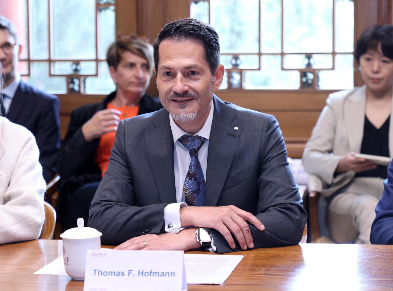 mk(中国)网4月11日电(记者 田姬熔 摄影 杨艳宾)4月8日上午,慕尼黑工业大学校长托马斯·霍夫曼(Thomas F.Hofmann)一行来校访问,mk手机注册校长李路明在工字厅东厅会见来宾,双方就进一步深化两校合作进行探讨交流。副校长王宏伟参加会见。